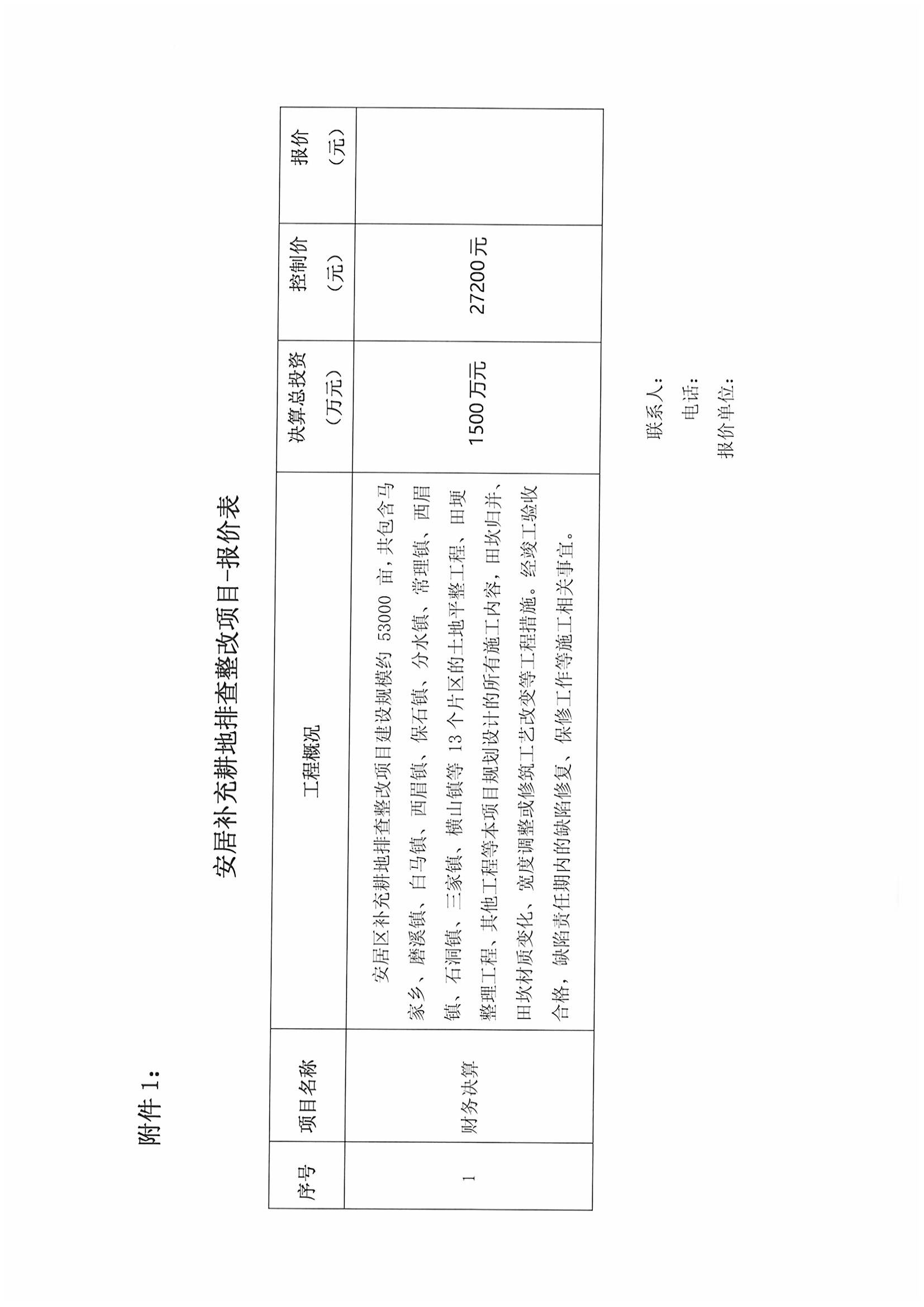 安居补充耕地排查整改项目竣工财务决算报告单位选择邀请函
