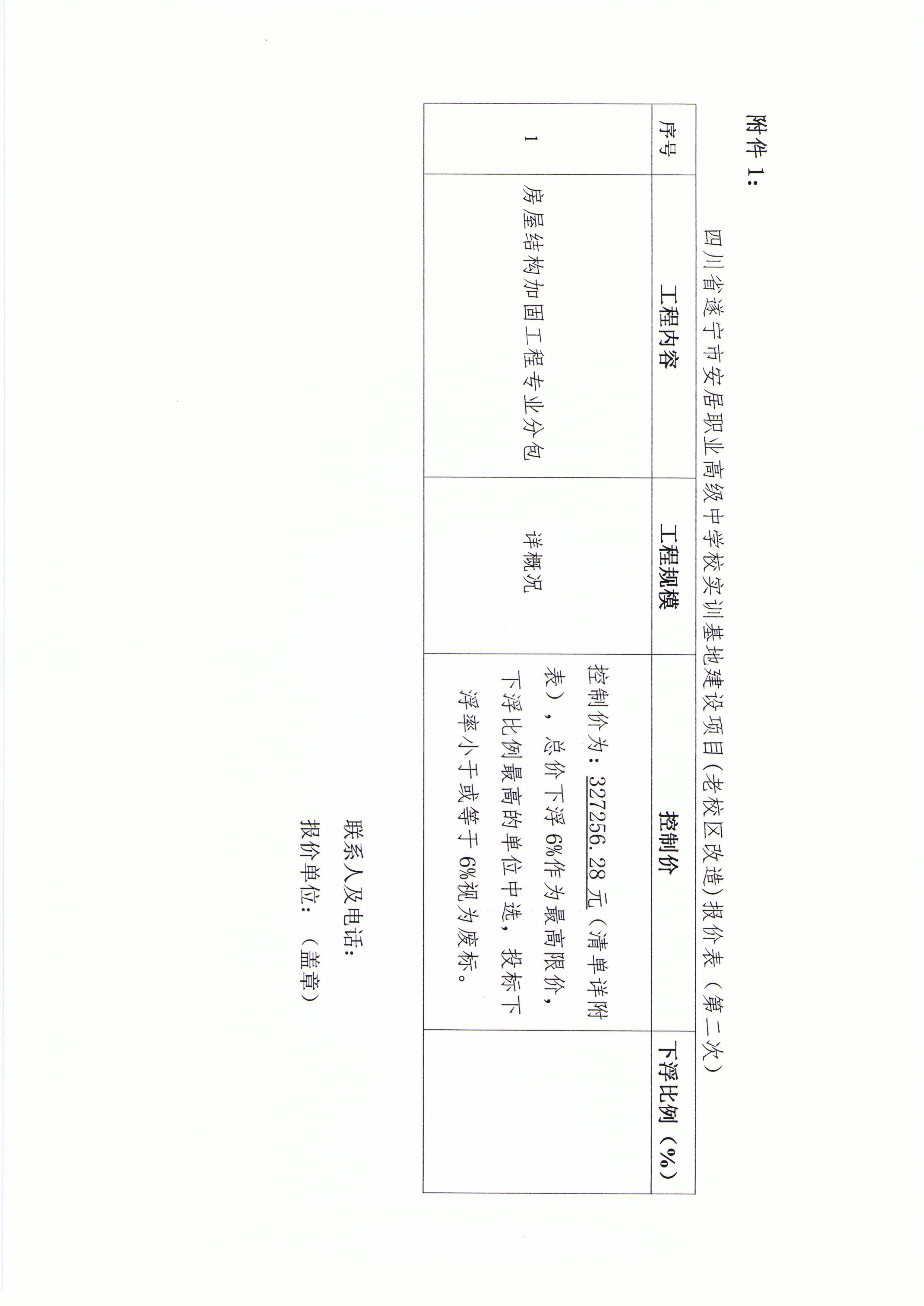 四川省遂宁市安居职业高级中学校实训基地建设项目(老校区改造)房屋结构加固工程专业分包报价表(第二次)