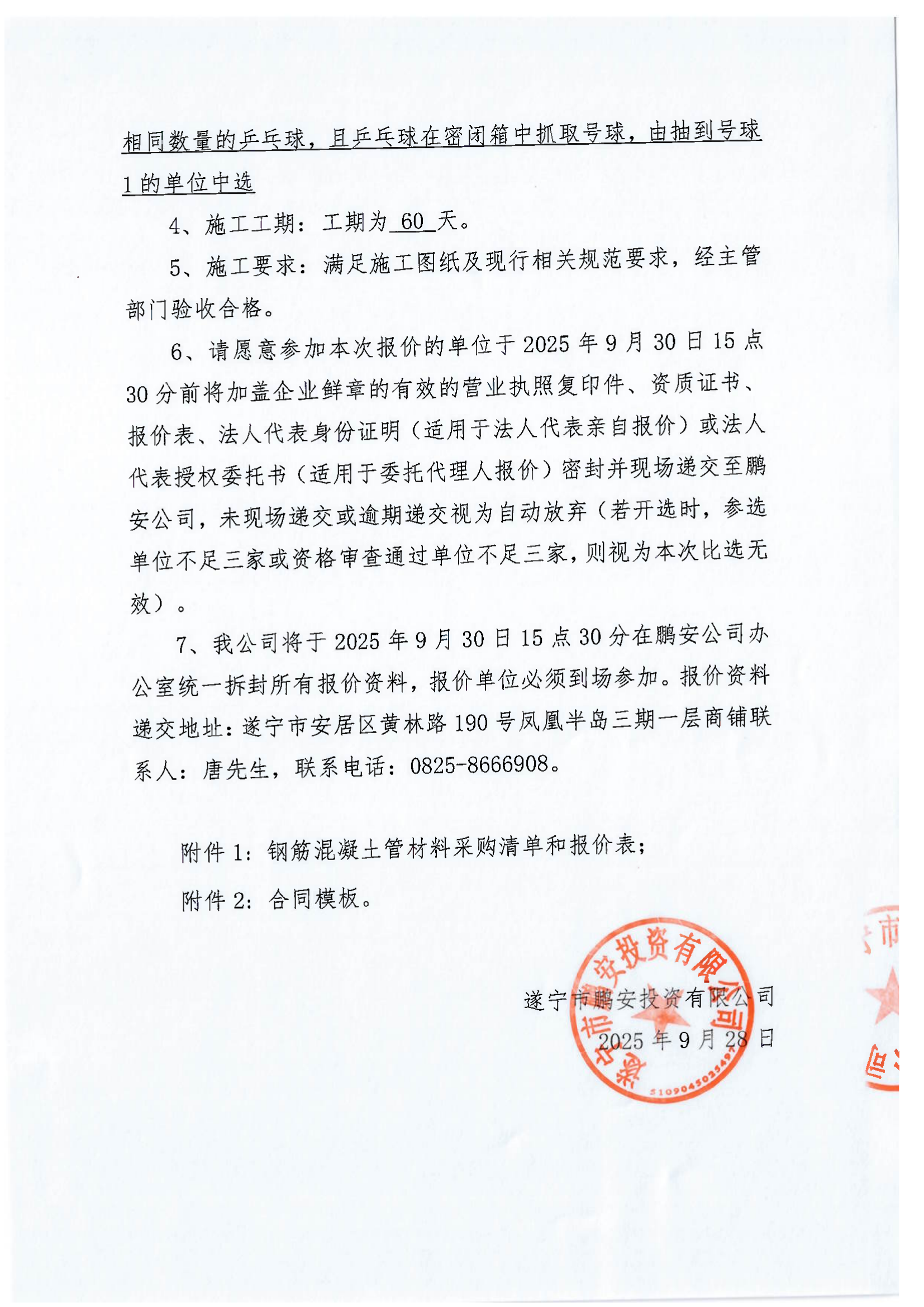 遂宁市安居区梧桐路片区城市污水管网整治及附属设施提升项目/遂宁市安居区城南旧城片区城市排水防涝整治建设项目钢筋混凝土管采购报价比选邀请函