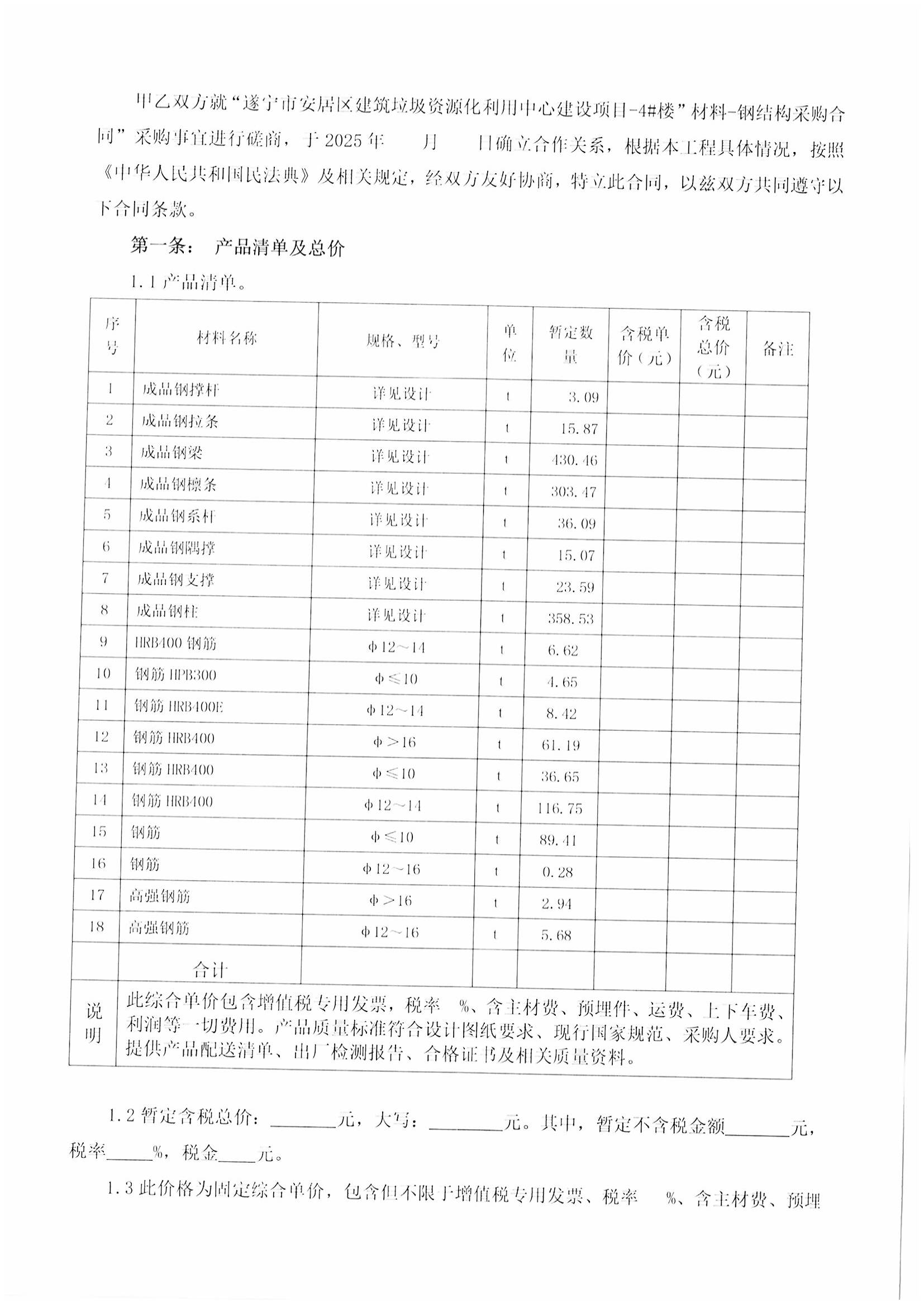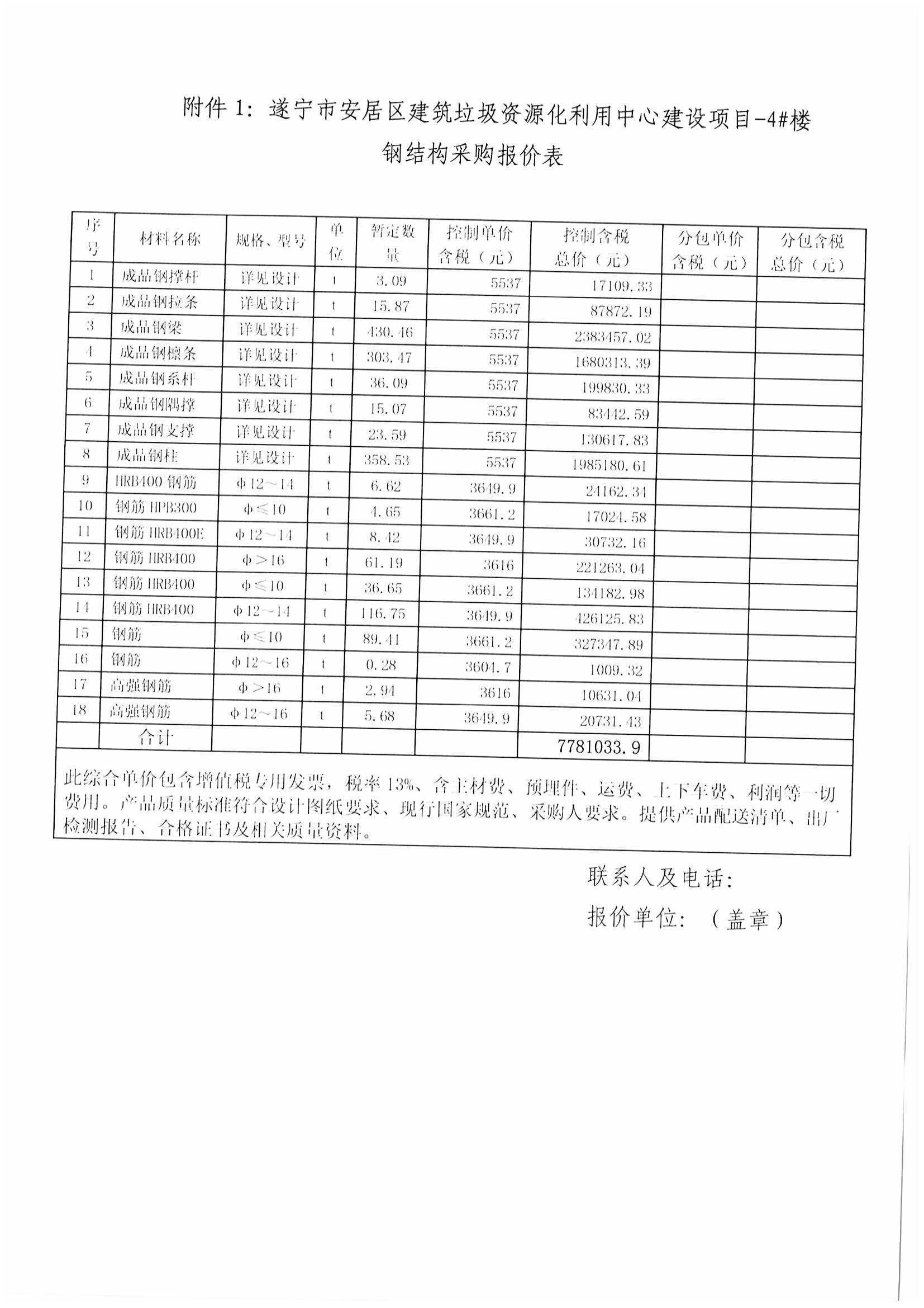 遂宁市安居区建筑垃圾资源化利用中心建设项目-4#楼钢结构采购报价比选邀请函.docx