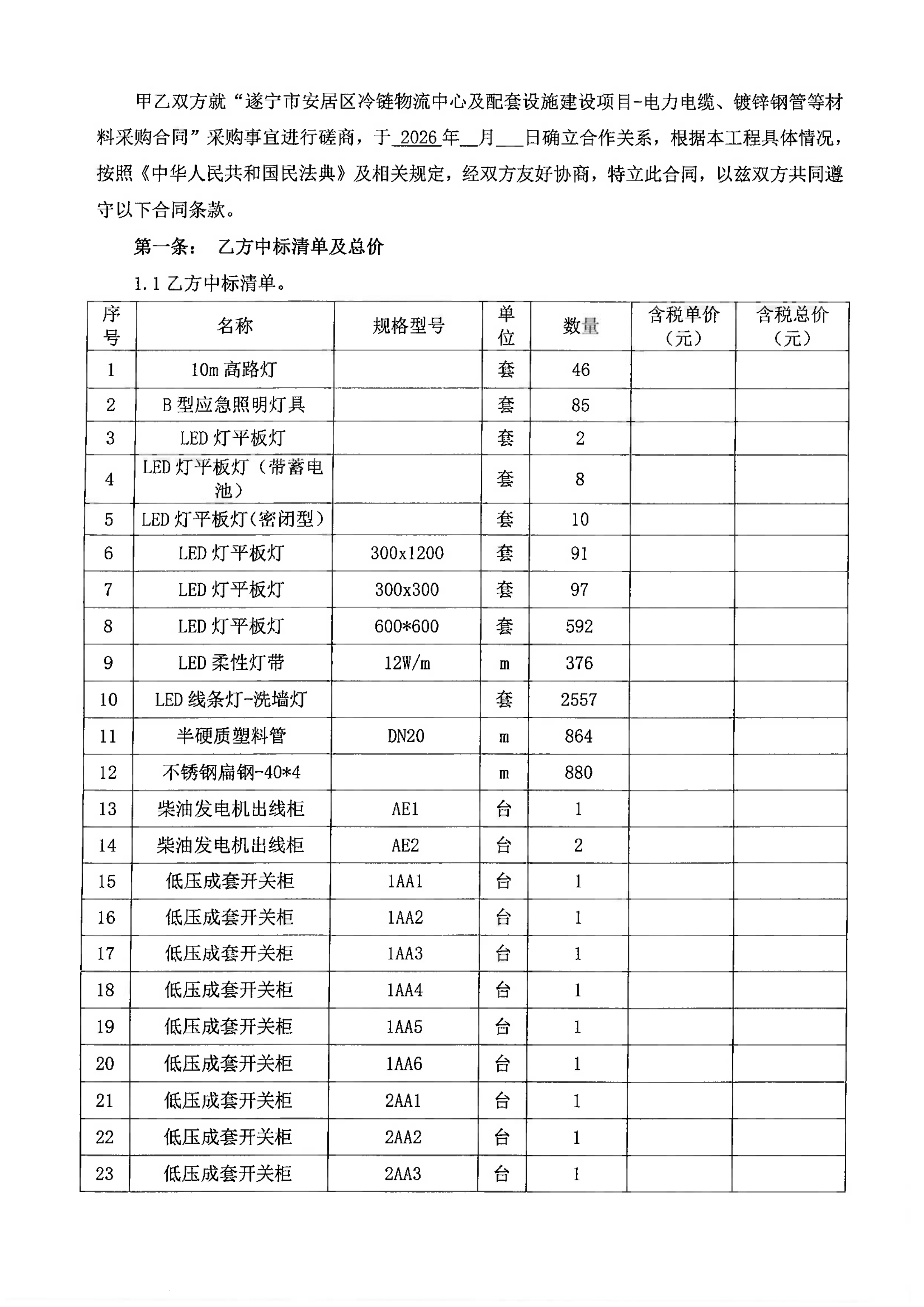 遂宁市安居区冷链物流中心及配套设施建设项目电力电缆、镀锌钢管等材料采购报价比选邀请函.docx